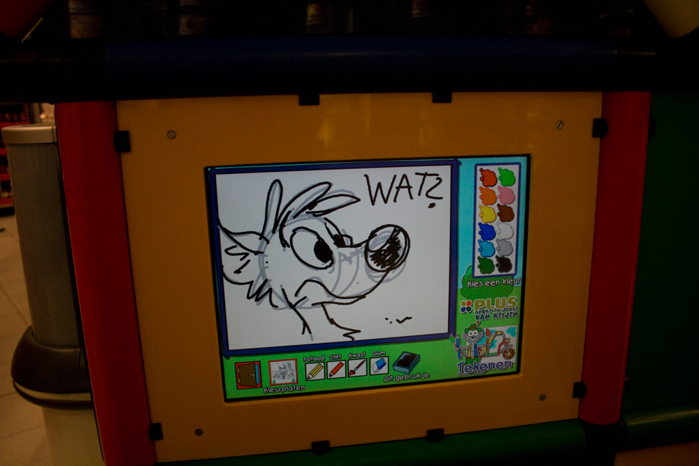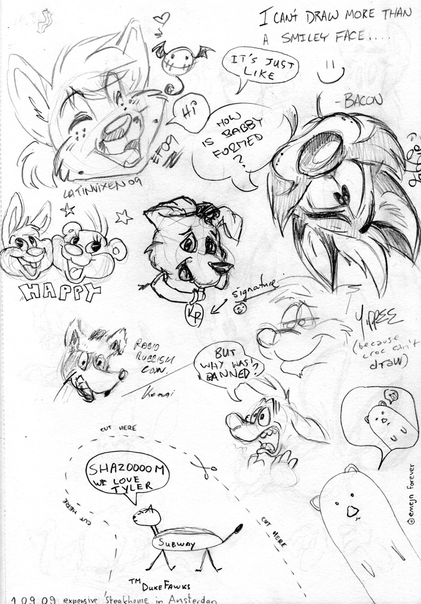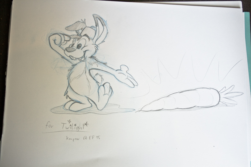Got up more or less early to meet up with Henrieke and Yamavu to prepare the cartoon drawing panel, but more artists joined so eventually it was just a nice little art jam :P Eventually we were even less prepared than last year.. It went fine though, just a bit longer than expected (hope it wasn't too boring). Henrieke did a GREAT job at live drawing, and Duncan did a great job explaining things in a very toony way. :) After that we had even more art jam. I think that day we also met ZotCoon and called Trufflehog :)