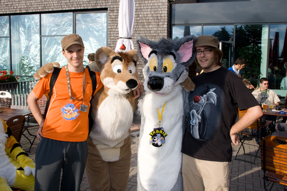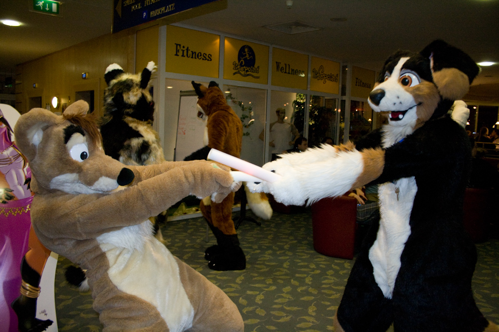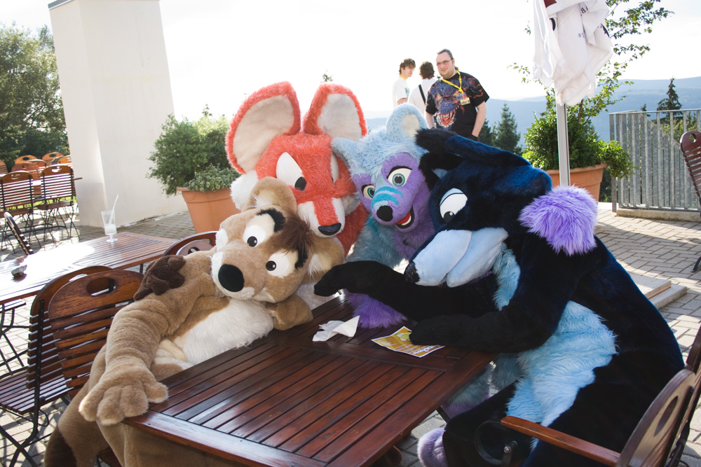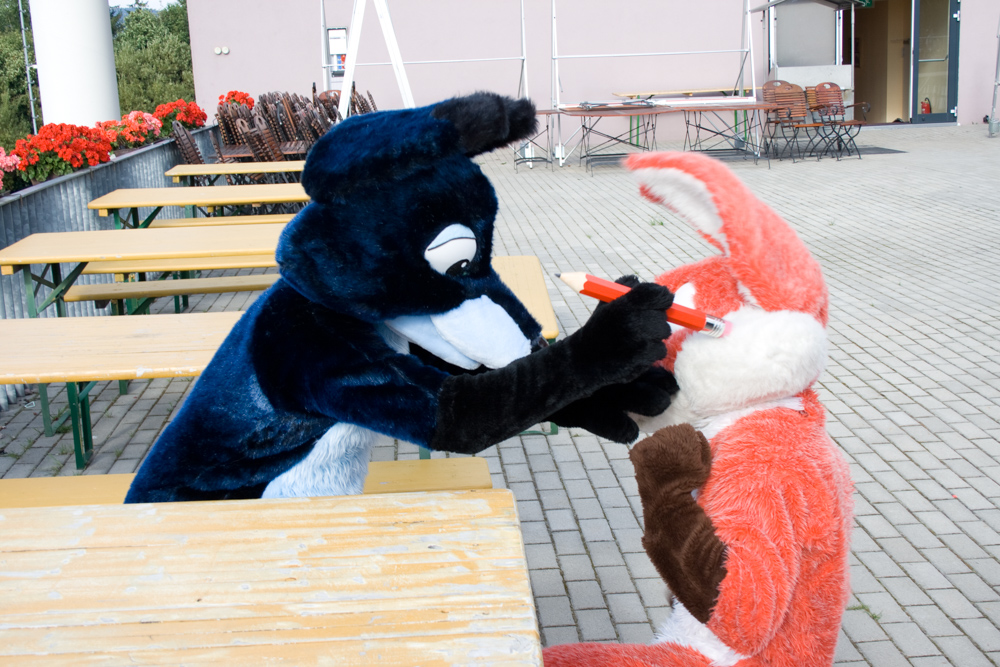 We noticed that quite a lot of furries were there, and found out that there was some suiting event going on. :) A very nice way to end a con, and the local people liked it too (probably also because Suhl is a terribly boring place). We went back to the hotel and had some fun with the remaining people, also we FINALLY managed to call Louve who was very happy about the call it seems :D We had a nice art jam in the lobby in the evening which was tons of fun, later I got to suit as someone else's character! (FUN!) Deaddog Party was a big fail since some VERY SMART person thought doing a cheese fondue in a NOT-AT-ALL-VENTILATED room was a good idea. It smelled even worse than that smelly fursuiter who never washed his suit.. People escaped as fast as they could. I feel sorry for Kenai.. :/ Later I got drunk with Sonny who un-ate his Dinner in front of the hotel.. eww! All in all a very nice evening!