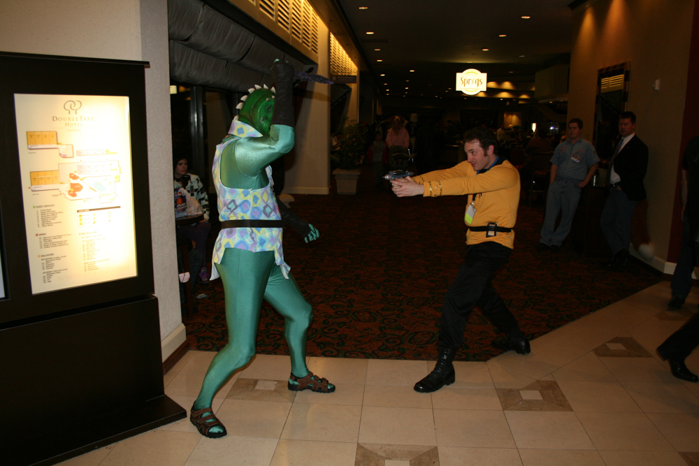 Star Trek cosplayers in the lobby.