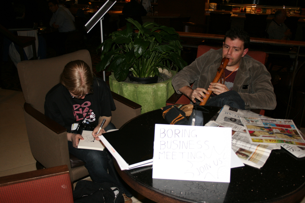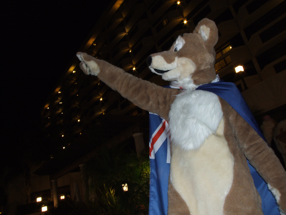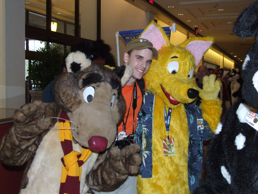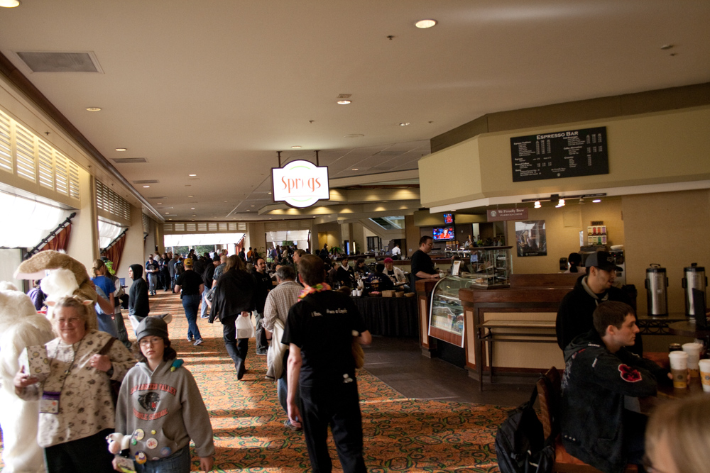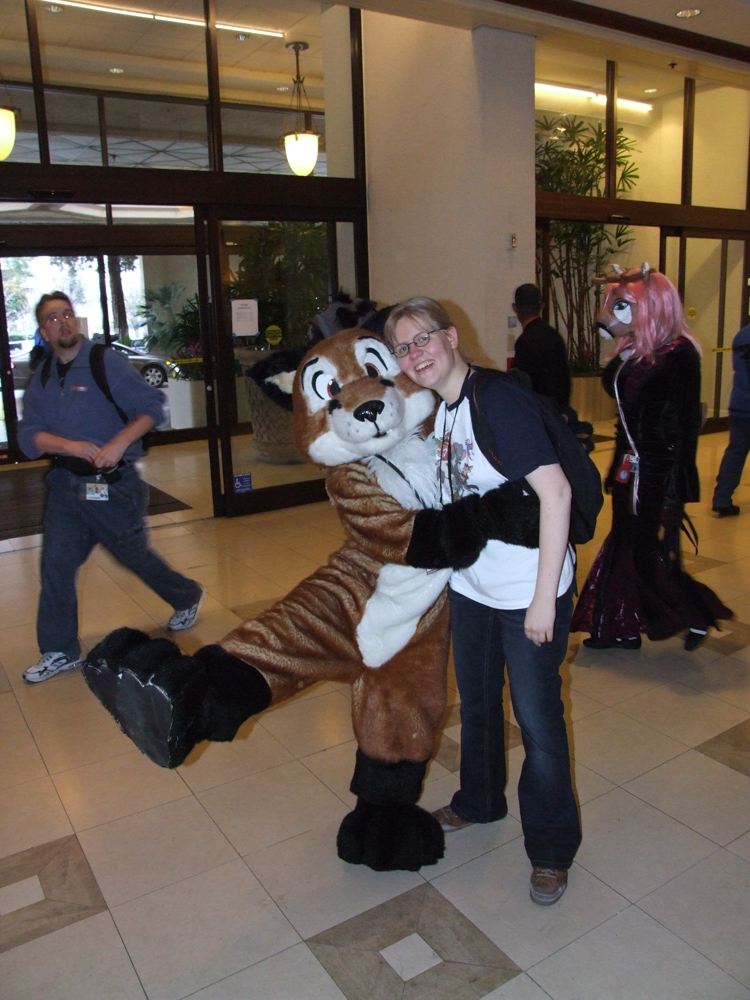 Henrieke and I arrived on Thursday at about 21:00 after taking the hotel shuttle to the Doubletree. Right at the entrance we met Tani, BBF and Nightfox, said hello quickly and met up with Tahoe. The registration line was very short already luckily. I picked up my luggage and went to the room which was huge! Never saw such a big hotel room before. Unpacked a bit of my stuff and went to the lobby and met Emejn, Jill and Dingbat.