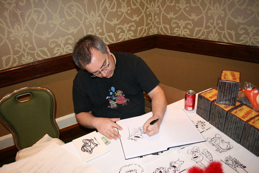 Afterwards we gathered around Jeff Pidgeon's table in the Dealers Den where Goldenrod, Kipper and Dingoroo joined and made a happy beaver art jam.