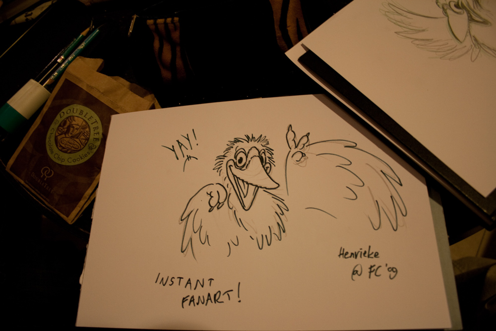 Woke up at 7.... But at least that gave me time to finish my fursuit. Met Jeff Pidgeon finally and got to talk with him for a bit, both Henrieke and I got awesome sketches :)