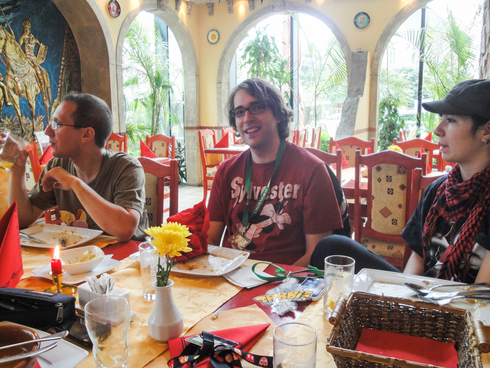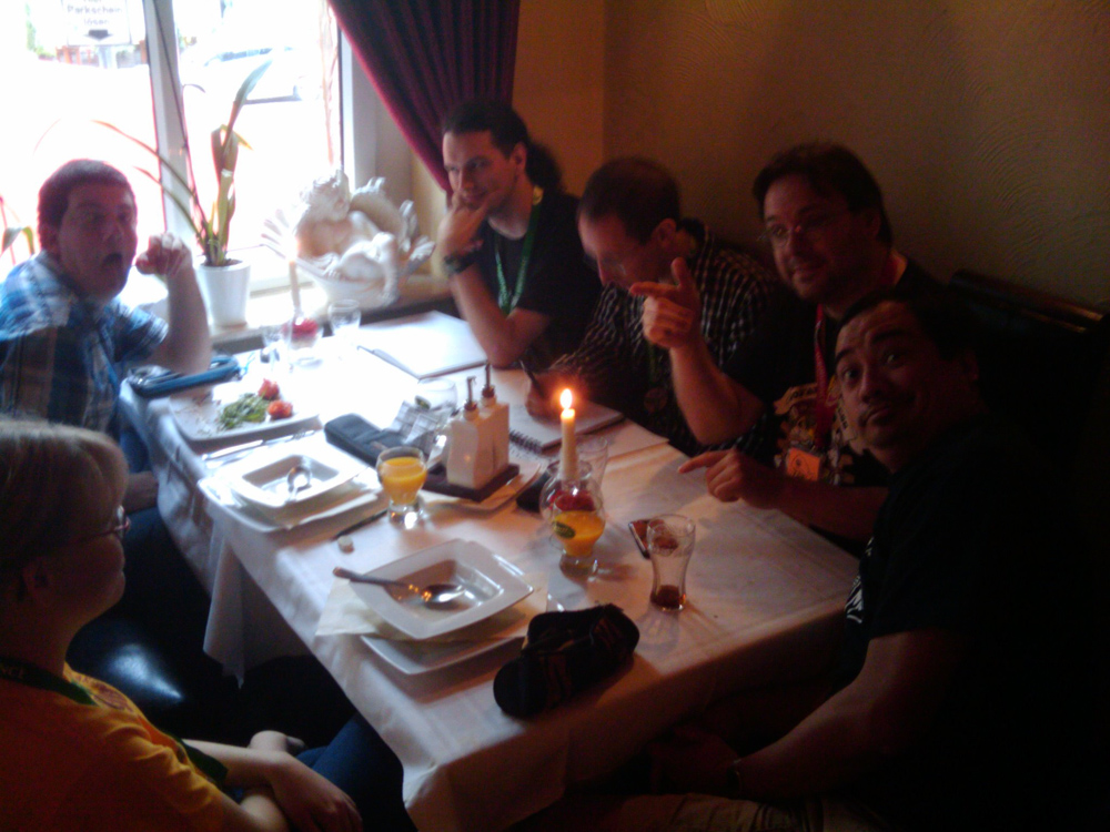 Got up at 9:00 being woken up by Henrieke, Katara and Ashanti who knocked on our door, had a quick breakfast in the room and went down to the lobby in order to meet arriving people. We sat down a bit with Keenora, Neo, Katara, Karakina, Titash, etc.. and eventually got Henrieke's roomkey. We moved the stuff to our room and went to the spanish restaurant "La Bodega" with Titash, Henrieke, Tabbie, Spikie and Kougo.