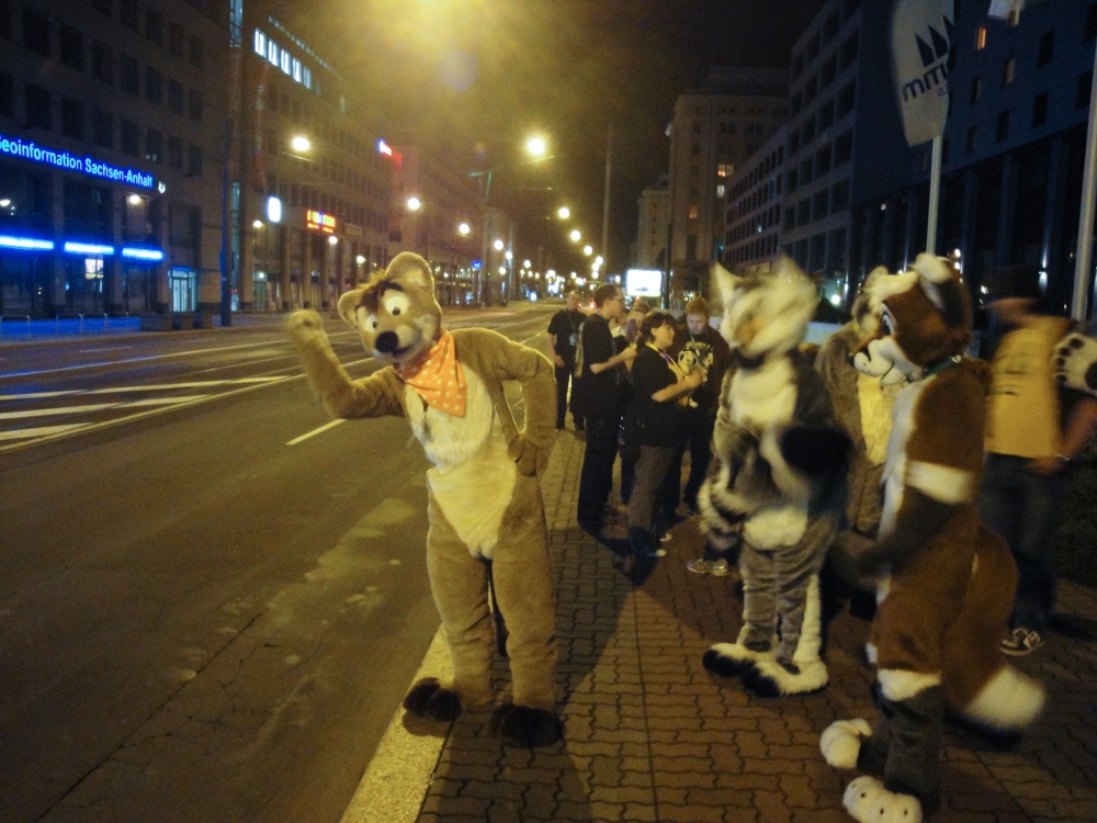 After that Tabbie and I got our Guy Fawkes masks, created some ironic protest signs like "I dream of Eurofurence without furries" and protested.