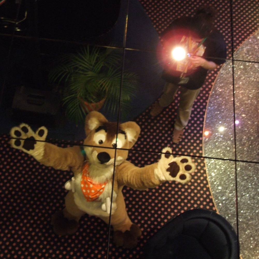 Later Henrieke and I went suiting again, so Tyler and Kiki looked around for fun things to do in the pianobar, said goodbye to people, got some photos and went to the room again. Henrieke went to bed and a drunk Tabbie, Spikie and me went down to the lobby doing stupid things. We did some long exposure photos with glow-sticks outside while apparently 20 meters next to us some drunk guy assaulted furries, luckily it didn't end too badly since the EF security did a good job and in the end 4 police cars were there. Since there was nothing going on anymore, I went to bed as well.
