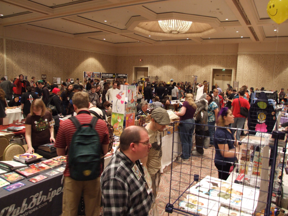 We got up, had breakfast, then went to see Michael Fry and Thomas Lewis at the Kaffeeklatch. Met Frysco, Loran and Doodles while we were trying to find out where it was located. It was pretty interesting there, just some of the other people there were weird. Then we went to artshow and Dealers Den. We met people like Brian, Tracy, Sophie and many other amazing artists!