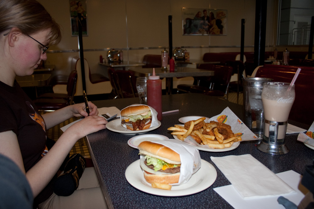 Also Flinters gave me a HP620lx (thanks again) and we met Eric Goldberg's niece again. We looked for someone to have lunch with at like 15:00 and ended up going to Johnny Rocket's with Rennie and had an awesome burger, fries and onion rings.
