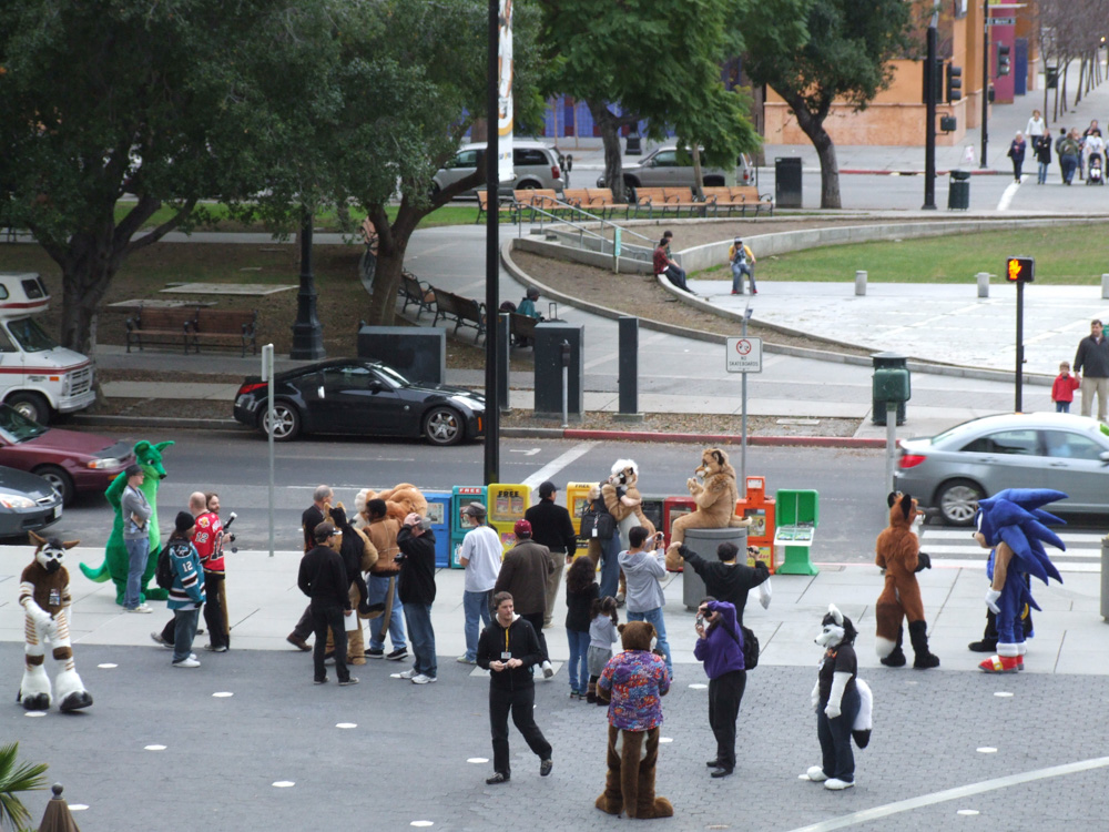 At the check-in counter we got informed that we don't have a fursuit floor room despite our confirmation. The lady at the counter was very nice though and had no idea what was about to happen the next few days. ;) We met Tahoe in the lobby which is always a good thing. Even though our room was in the 8th floor, it wasn't as bad at all since our room was really big and we had two giant windows giving us a beautiful view over San Jose.