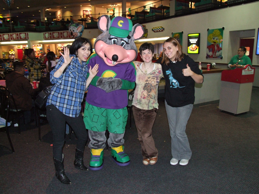 Henrieke went to the room to draw while Tyler and Chorca were still downstairs. We eventually went to the room again, ate some pizza leftovers and looked at photos. Then Henrieke and I went to Chuck-E-Cheese with Vinci, Tally, Soundhound, Gavyn, Artie and Mike. The girls got photos with Chuck-E and I was just shaking my head. Also we had a nice art jam there.
