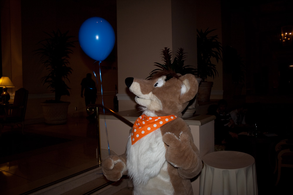 Afterwards we went to Walgreens to get some Nutella and bread and then had dinner at Pita Pit with Tahoe. Then we spent some time in the Lounge at a table with BBF, Tani, Nightfox, Emejn, Duco, Deezlberries, Loewi and other people. BBF filmed and Emejn was being funny as always. Since there were hardly any people suiting at that time, we were asked to get Tyler and Kiki downstairs, so we did that. Tyler and Kiki had some fun in the lobby with a giant balloon and another critter called Vitamin C. Later in the evening at 23:00 ZotCoon and Margo arrived and we gave them a place in our room since our other roomates didn't arrive until the next day anyway. Tahoe joined us in our room as well and had some awesome presents for Henrieke (Disney LPs).