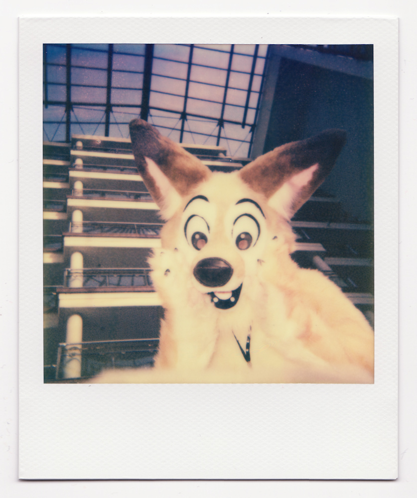 We got up and went down to the lobby for a bit, mostly because I was looking for someone who could take Polaroid photos of the fursuit parade. Leeden was the lucky one (thanks again!).