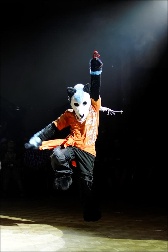 Almost starving, we ate half of a subway sandwich from the day before while watching the fursuit dance contest. We went downstairs then, Henrieke to the art show and myself to the fursuit dance contest, cheering for Neo (who won by the way!).