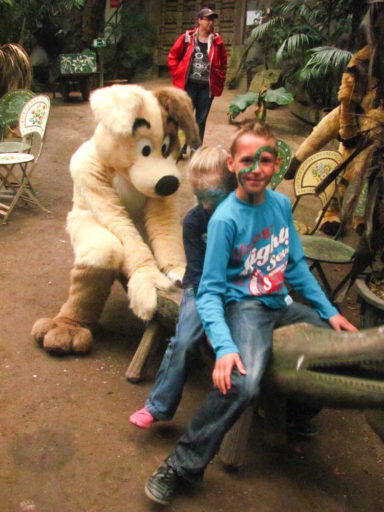 The park was celebrating its 25th anniversary and therefore on this day, lots of events were planned, mostly for kids. Since the park runs mostly on donations and they asked us to come, of course we couldn't say no. Sadly, due to the rain, there was almost nobody there. Eventually we went suiting inside the tropical house which is very nicely themed and contains lots of exotic birds. We didn't encounter many kids (maybe 15-20), but at least they seemed to be very entertained. :)