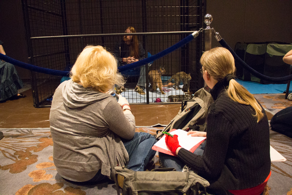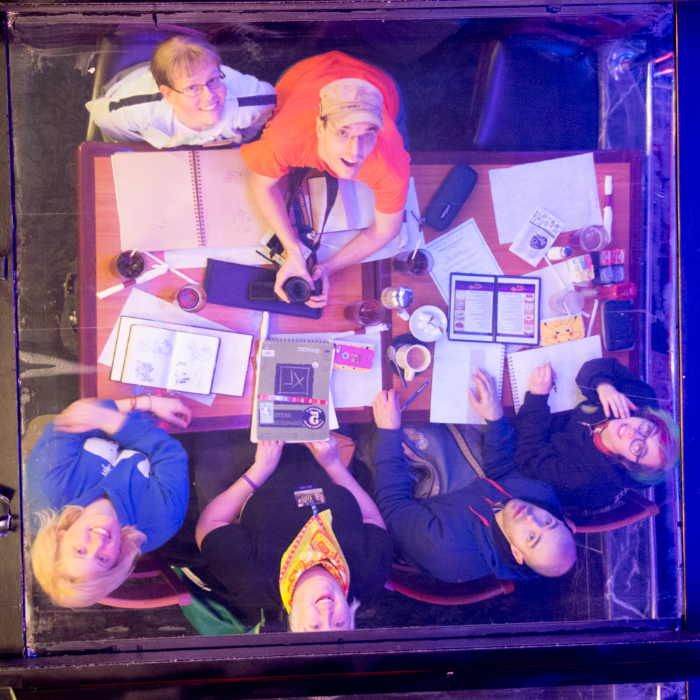 I got up at 12 and met Henrieke and Louve who were busy drawing cats in the charity room. Henrieke was up for a while already since she attended Louve's live drawing panel.