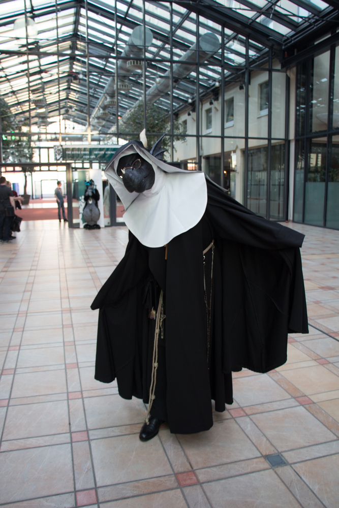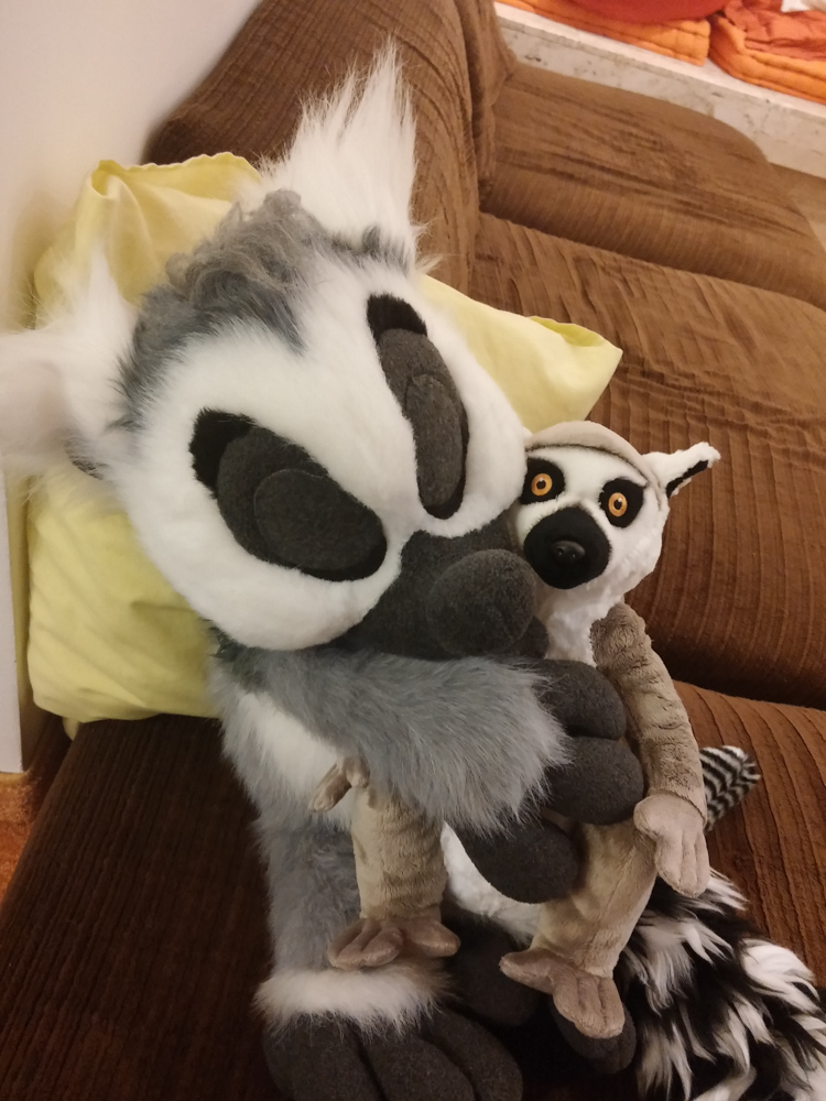 Djem cut and set up the booth again in the meanwhile, and after checking how the signs were going we started decorating the booth with additional help from Itchigo and Tabbie. I went back again to see how the signs were doing, and as it was getting dark already, I helped Luchs and 2 other Swiss guys who spent hours cutting and assembling the standees for the con with their work, holding the plywood and providing light. Since the restaurants in the hotel were closed by now, Henrieke and I made use of the staff buffet, which featured some leftover meatballs and potato salad. We met Itchigo and a nice British security guy there, had a little chat and went back to our room. On the way we ran into Pegla, who surprised Henrieke and me with a cute lemur plushie and a very old 9.5mm cinema camera. Also we got to say proper hi to Djem and Snowy. On the room we took a bit of a break and I finally got to present Baseball's new wings, something I worked on until the day before EF!