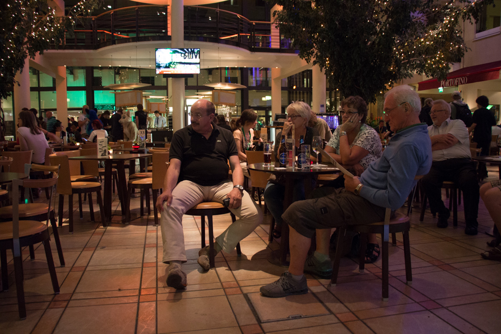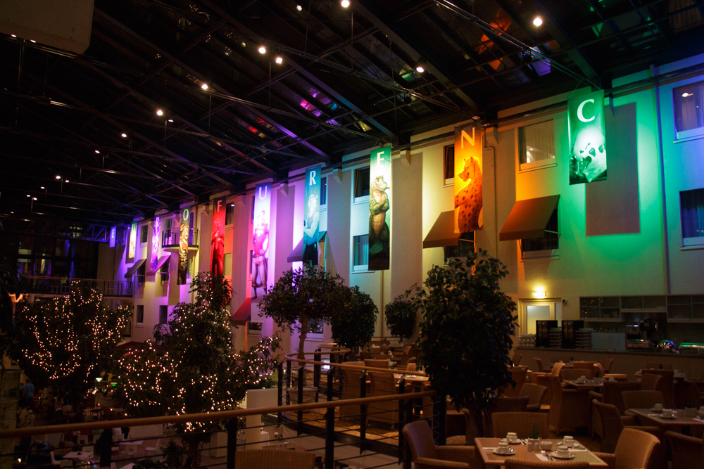 We ran into Itchigo right away. Tabbie and I re-parked the car to a nearby parking spot and we all checked in. Luckily we got a nice room on the first floor again, almost next door to Ace and Noodles. Tabbie got a room at the end of the floor which was also really handy! I unpacked our stuff while Henrieke took a nap and Yotie and Eko came by to say hi. We wandered around in the lobby that was filled with way too many people already and checked out the Sommergarten. The lobby also featured the usual piano player, playing bad covers of popular songs. For dinner we went to our favorite restaurant in the Estrel, the Portofino with Tabbie, Ekorren, Yotie, Lisa, Wolfy and Yamavu.