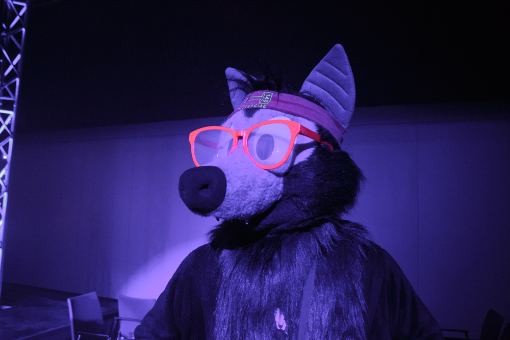 Tabbie, Mag and I planned to go to the steam sauna but sadly it already closed. We hung out in Tabbie's room instead and planned to go suiting together, Tabbie got sidetracked so I went ahead and took Baseball to the 80s dance, this year at the giant main stage. The music was alright, though a bit remix-heavy and not all 80s, but I enjoyed it! I met Cassy there which turned out to be worn by Chiros. Henrieke, Ekorren and Mag also joined. It was really dark on the dance floor with mostly only UV lights, making it really hard to see much, it turned out some part of the system crashed. Henrieke took some nice photos and Manukoa also joined the dance.
