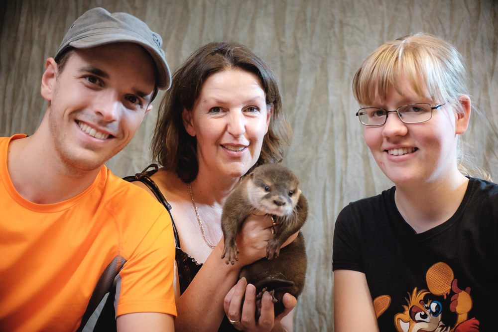 Back at the Dealers Den I managed to pick up the last Artistic Visions book Henrieke and I were missing in our collection by Ursula Vernon. Since there wasn't too much else going on, Ekorren, Tabbie, Mag, Coora and I decided to go to the steam sauna. We had some fun with the ice cube dispenser. When we were done the Dealers Den almost closed and the otter photo shoot was scheduled for 18:15, so I went to help Henrieke pack up her stuff. The otter photo shoot was nice, even though the poor baby otter was stressed out a bit by the long day as they just arrived earlier that day. We got a nice photo together with Rosi. The photographer who happened to be a huge fan of otters couldn't hold back his tears because of all the cuteness.