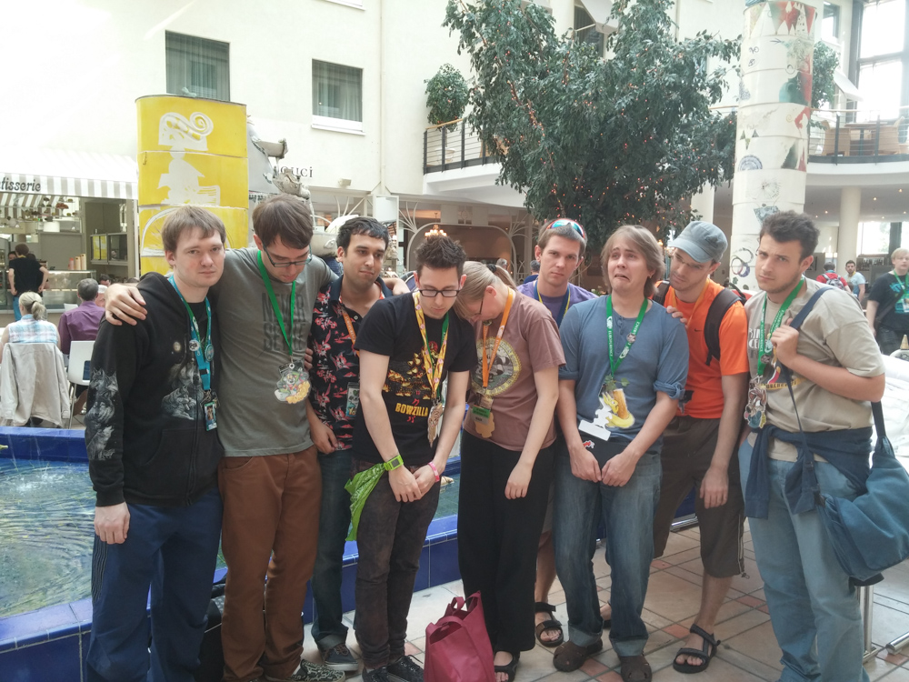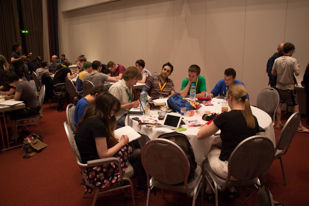 After the sauna Henrieke and I went to see the opening ceremony which turned out to be 40 minutes delayed, so we hung around in the lobby a bit and met Tabbie and Birko. We sat at a table with Coora and Yamavu and tried to get some food, but it turned out that the hotel didn't offer any warm snacks in the lobby yet, too bad.