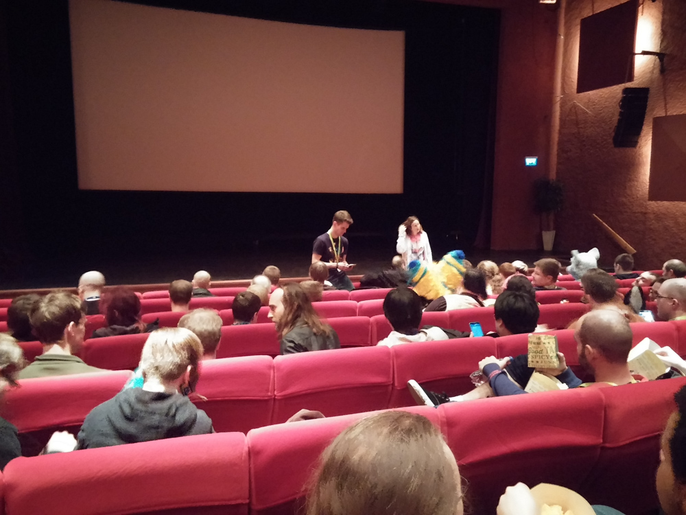 I brought Coconuts, Schokobananen, Drageé-Keksi and Almdudler. As usual, the spanish people went overboard and provided the classiest combination of bread, cheese and ham. Tabbie tricked me into trying extremely hot crisps which wrecked my sense of taste for a while. If you read this Tabbie, keep in mind that you'll pay for this. After snack exchange, we went to the art-show to put up a little squirrel picture Henrieke made for the charity auction. After going to the room and getting our clothes, we went tagged along with the Americans in order to be early and get good seats for the Zootopia premiere! We probably took a very inefficient route but eventually made it. Henrieke and me sat with Titash, Ekorren and Tabbie in the little town cinema/theater. I probably don't have to mention that Zootopia was excellent!