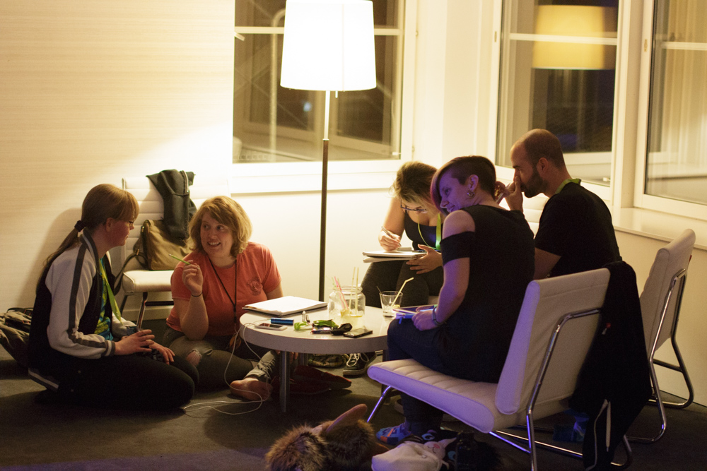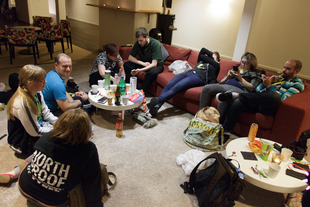 On the way back, Henrieke, Titash, Ekorren and I stopped by a pizza place that was just about to close and managed to get some really tasty Pizza which we ate in one of the plentiful little lounges in the hotel. We went back to the room to rest a bit, then back and watched some Star Trek re-cut videos. After that we spent the rest of the evening in the Artist Lounge and went to bed at 2.