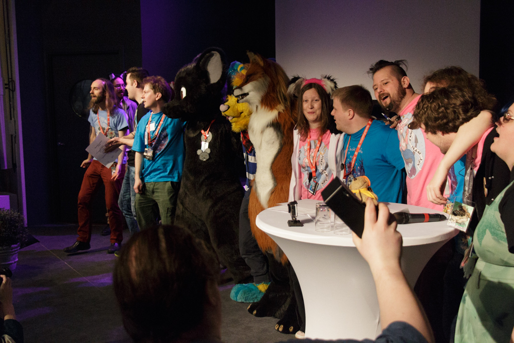 Since it was almost 18:30, I went to the room to get Baseball down to register for the Fursuit Sharades, my favorite event at NFC. The event was delayed by about 30 minutes in the end, sadly Henrieke and Ekorren missed it but Baseball had a fun time! Baseball was on a team with Gwyndolium and Skittles and two others whose name I can't recall. At 21:30, I was done and hungry, luckily Henrieke brought some noodles from Nynäshamn Sushi. I ate another painkiller in the room and Henrieke and I went to a big remote lounge where Sithy's birthday party took place.