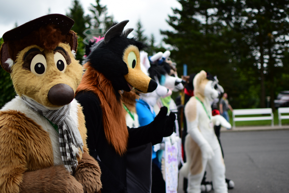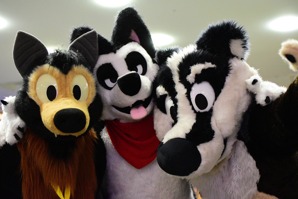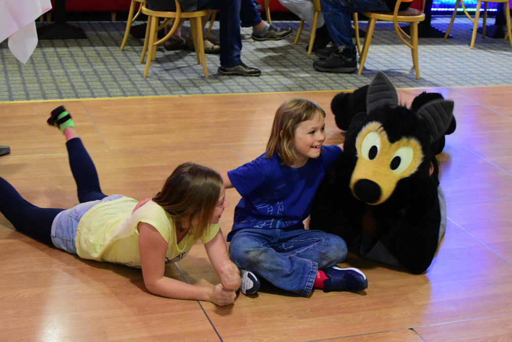 After another group photo all the suiters went to the main stage area. Baseball went to shrink his wings while Dog had a fun time playing with a toddler who was extremely shy at first, but really loved the big animals! She would constantly go up to a suiter, pet them and then quickly run back to her dad, it was adorable! Baseball, Dog, Eddie and Titash went out to get some Polaroids taken by Mag. Henrieke was already up in the room, Baseball stayed a bit longer in the lobby and had some fun with all the people who came specifically to see some big toony animals!