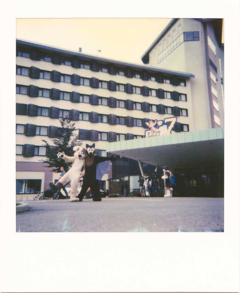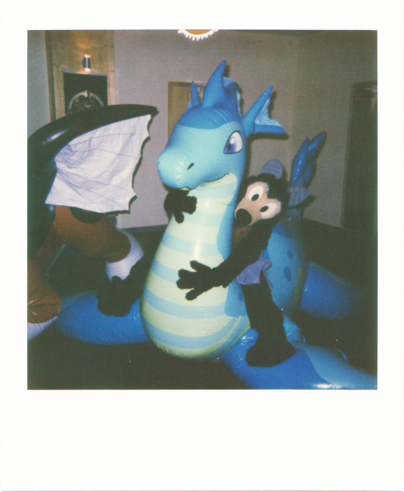 Later I went down to the lobby and ran into some rude Hyenas, took a nice Polaroid! Seeing as there were still some parents with their kids in the lobby and they all really enjoyed the fursuits, I got Baseball down to the lobby who entertained the kids there a bit.