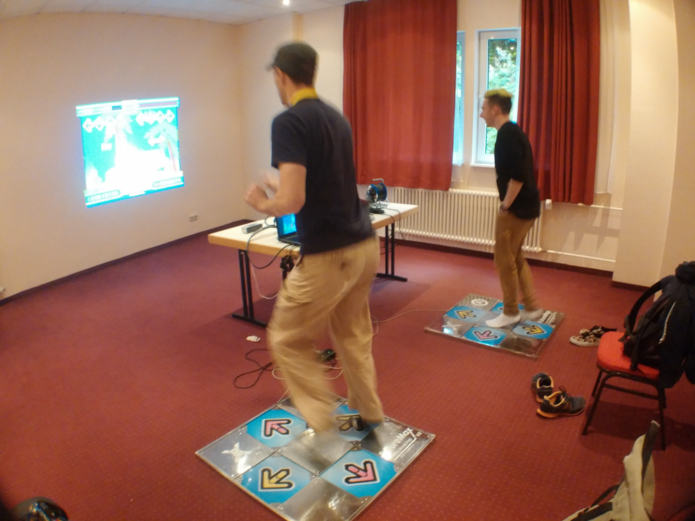 I checked out the dance a bit and got a bit obsessed over a cute visual that was playing on the screens, perfectly synced to the music. We spent much of the night trying to find the source. I got to chat a bit with Krauti, who always made sure we got everything we needed, and the guy who runs the Bavarian furdance. After more artjam, we went up to the room and played Jackbox until 2:30.