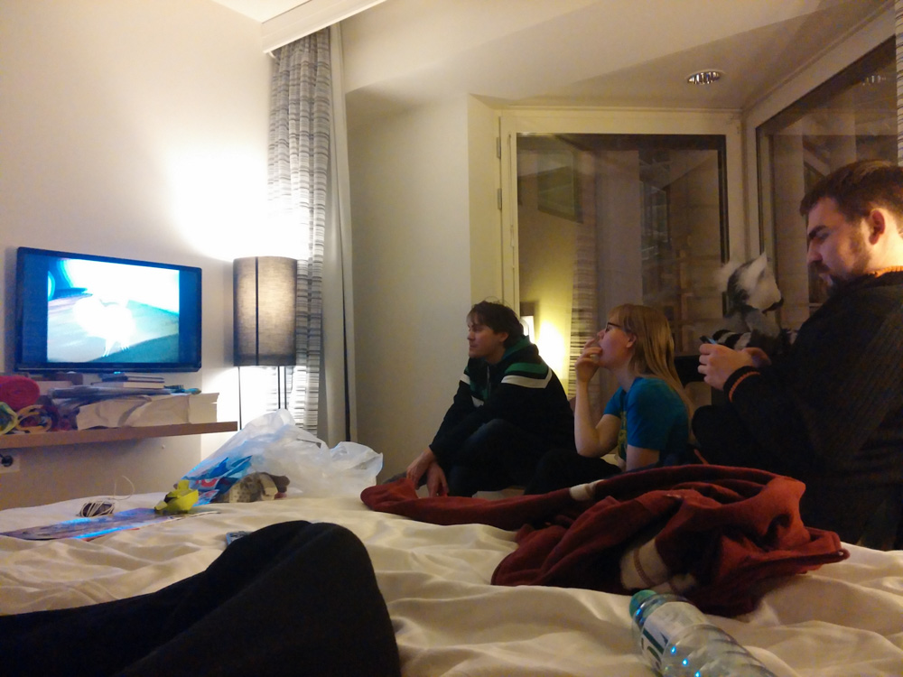 Mag, Sweek, Ekorren and I flew to Amsterdam together. We arrived at the Mercure hotel near Henrieke's work at 22:50 and flopped onto our beds.