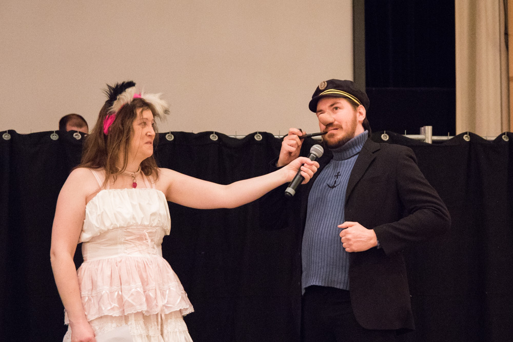 Procyon forgot his fursuit feetpaws, so he asked if he could borrow mine, I went to the room to get them and they fit! We sat in the 2nd level area a bit and chatted. Then I went back to the Dealers Den to meet Henrieke, and we went to see "Strut your Stuff". It sure was something!