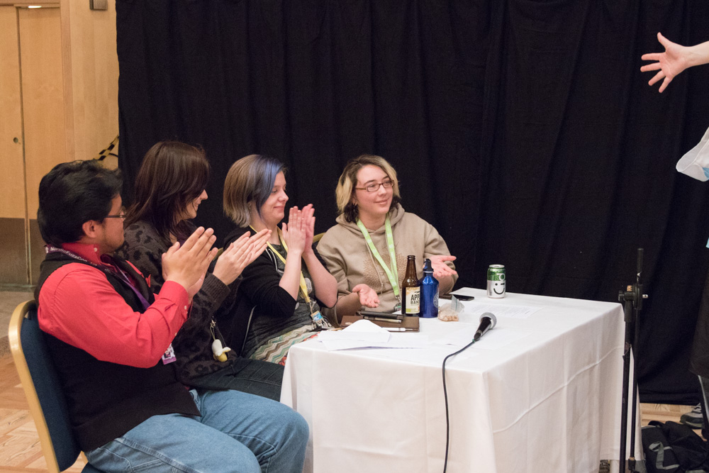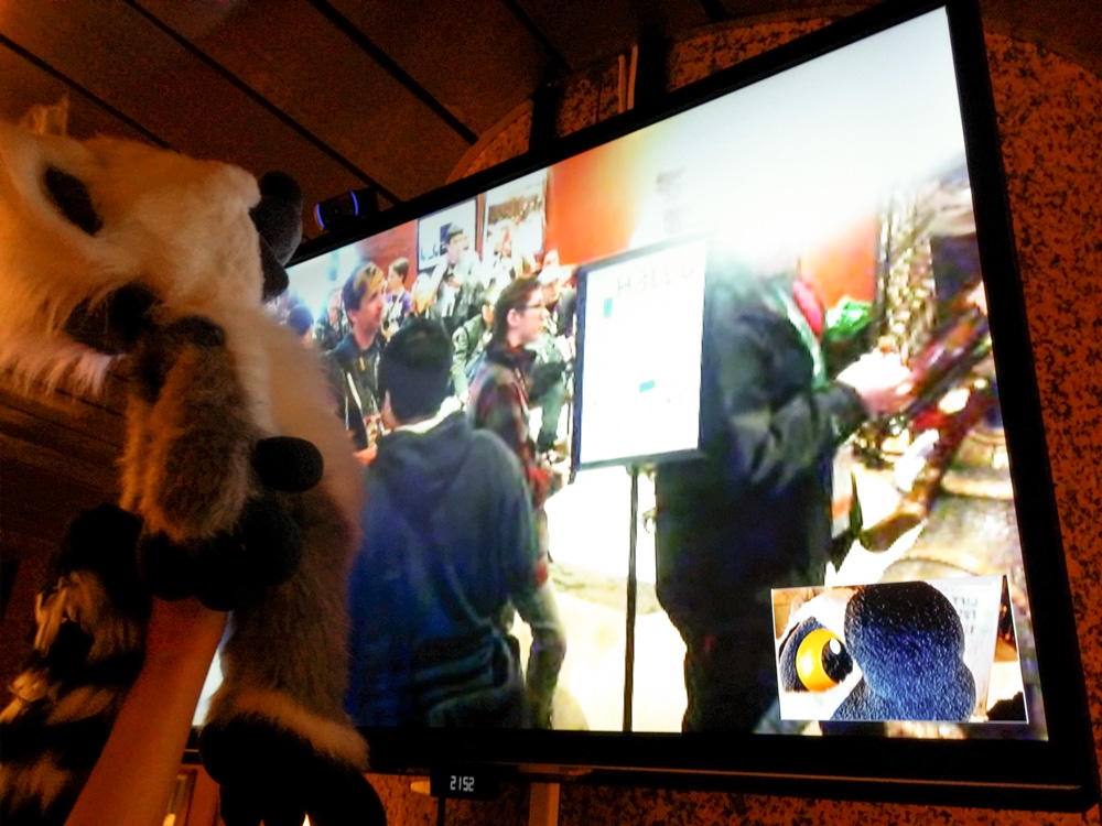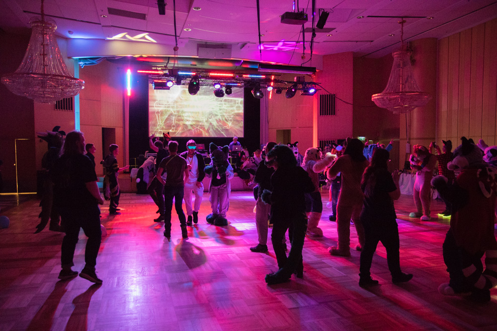 I had dinner at MAX with Henrieke. We ran in the Americans on the way back. I got into fursuit and Henrieke registered Baseball for the fursuit charades, my favorite event at NFC! The charades were super fun, and Baseball quit before the event had some NSFW prompts. They also played the Furryshop video that Trax, Shorty and I made a while back.