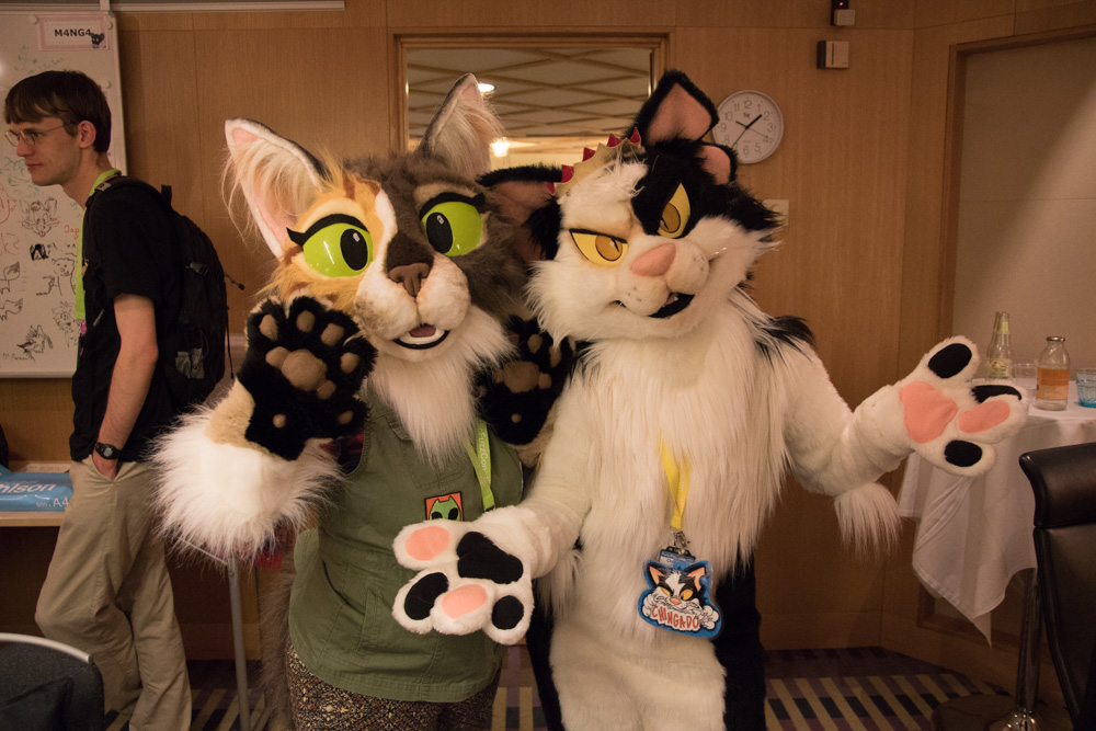 I helped Henrieke carry her stuff from the Dealers Den, then to the room. I gave my feetpaws to Xylious, who was suiting as Procy's Cami. We sat on our room a bit with Ekorren, then we all went to MAX with Sweek and Mag. Procy and Xylious joined as well. The Americans also arrived at MAX a bit later.