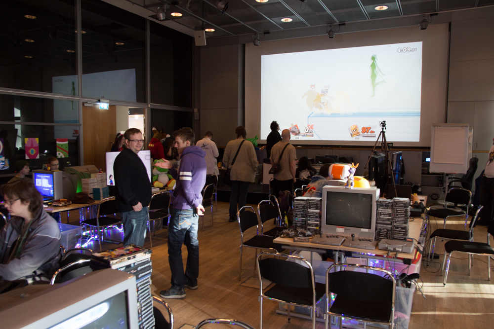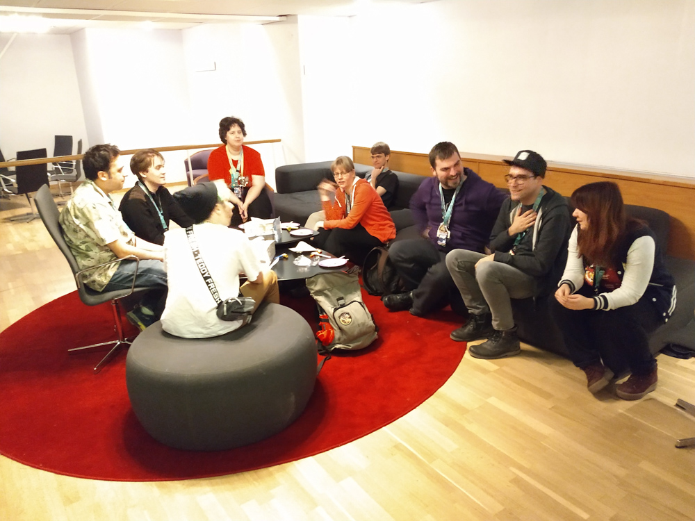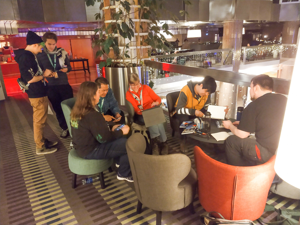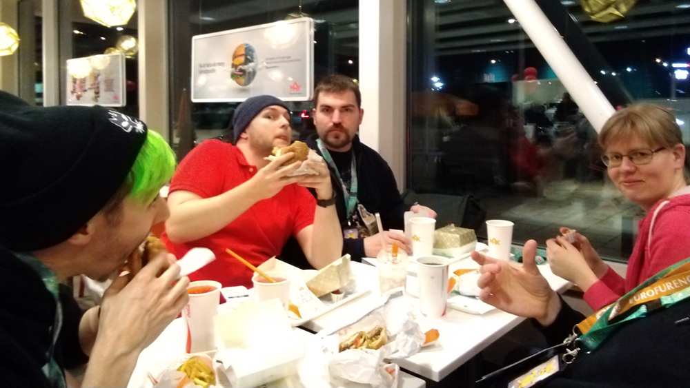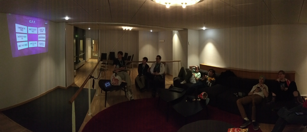 We were staying in our small apartment in Amsterdam the night before, so we only had a short bus ride to the airport. After some expensive sushi we boarded our flight and had landed on time at Stockholm Arlanda airport. At baggage claim we ran into OWolf, also Sheppy who had to wait quite a bit longer for his luggage than we had to. We went to the FuzzBus, the hotel shuttle that NFC provided every year and had a short ride to the hotel with a stop at the overflow hotel.