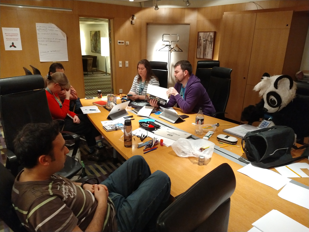 Since we wanted to do some drawing, we moved to the temporary Artist Lounge which had just enough space for Paco, Shorty, Henrieke, me and Yamavu.