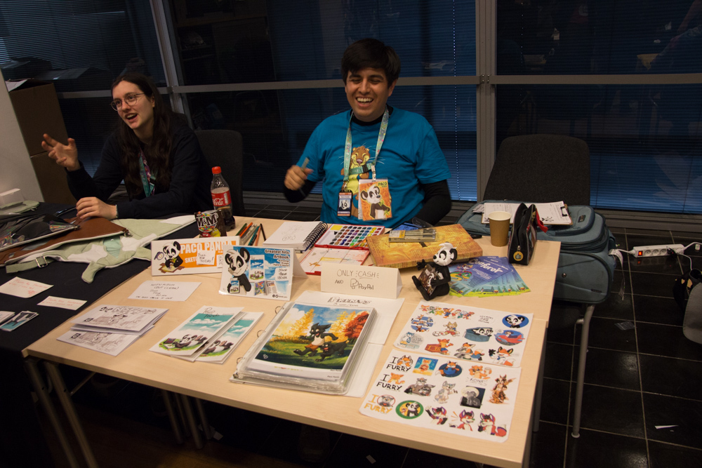 At around 23:00 we had the great idea to call our friend C_Eagle. After some troubles we got Hangouts to run and had a very long video call! Jill, Shannon and Clawed also dropped by. Henrieke and Ekorren went to the room, I went to the Artist Lounge and did a trade with Christmas and chatted a bit more with Paco. I went to bed at 2:30.