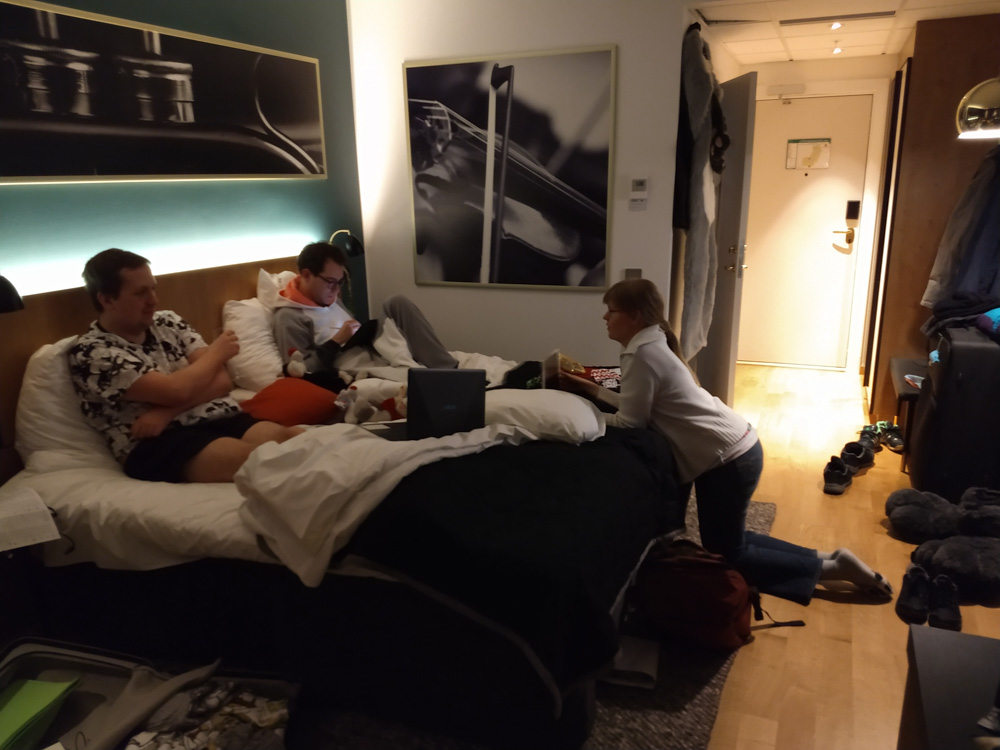 We got up at 10:30 and quickly went down to the breakfast buffet after learning that the hotel was kind enough to extend it to 11:00, usually it's only open until 9:00 on non-convention days. We had a nice meal together with Mag and Yotie. Chiros and Ekorren also joined for a bit, but we had to go up and pack soon.