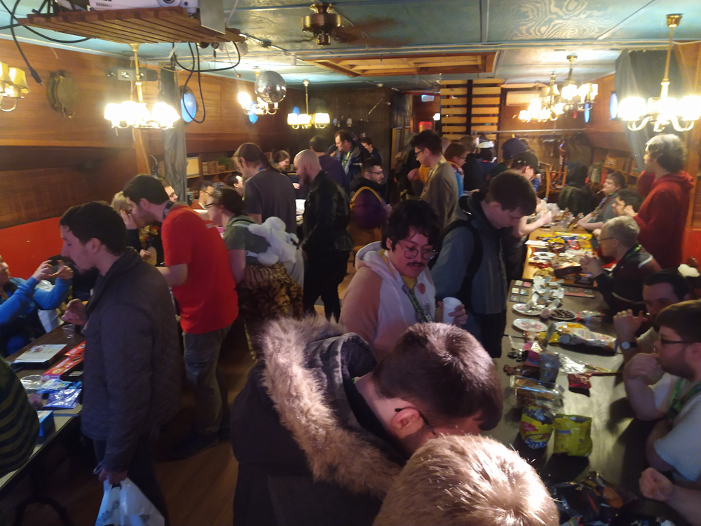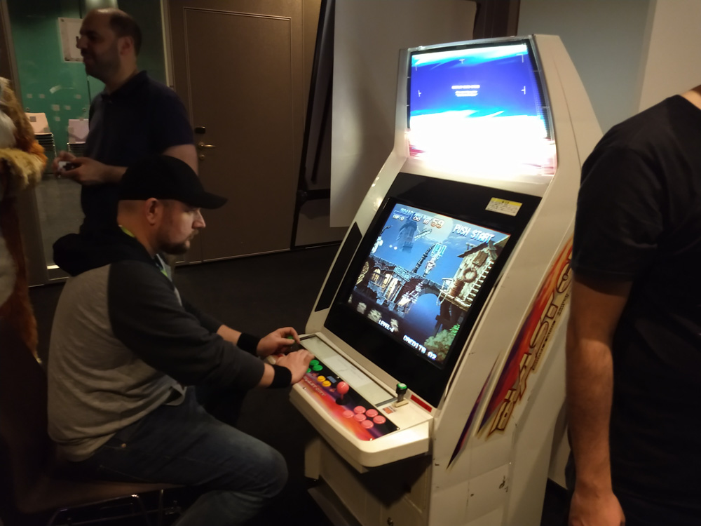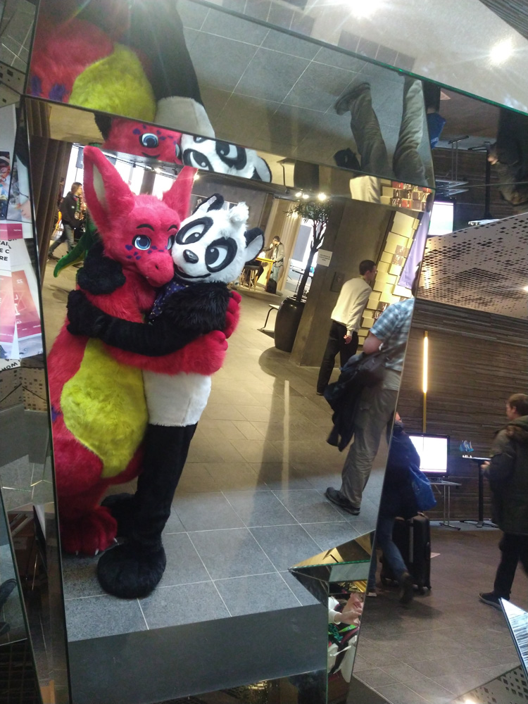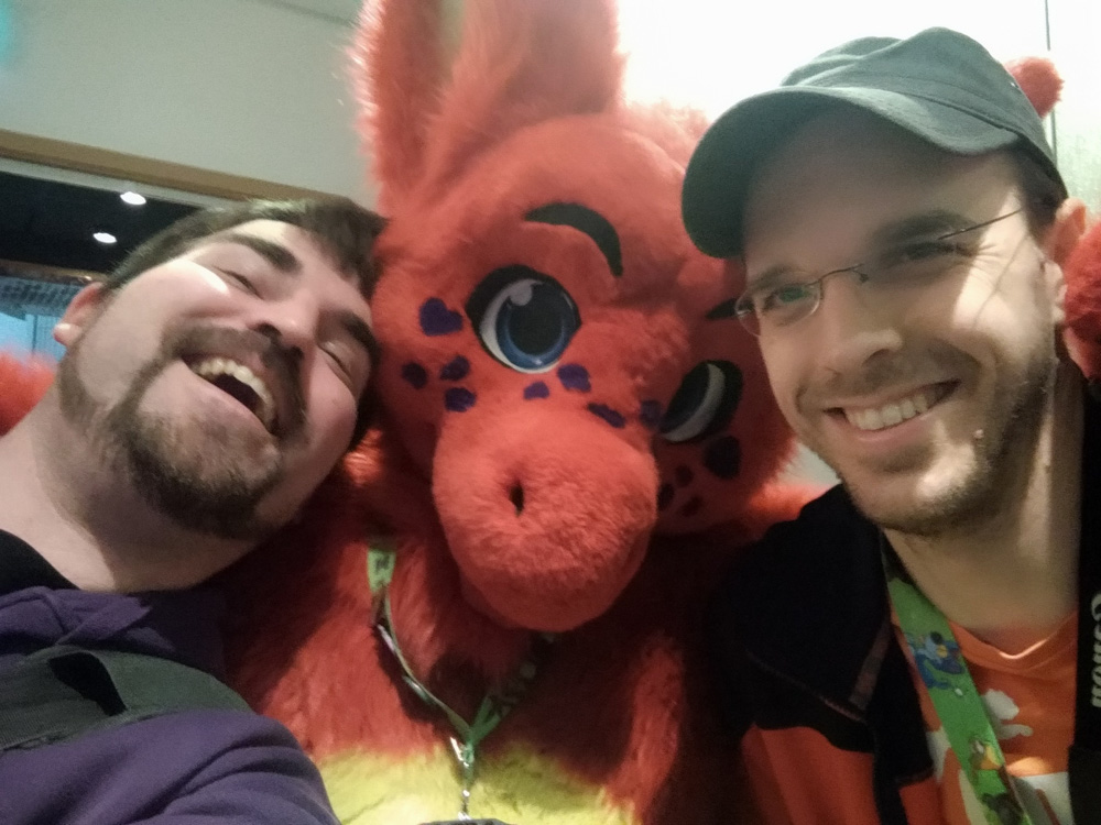 While waiting for Henrieke, I took the chance to play a few levels of Bubble Bobble with Chiros, and I took the chance to thank the person who sets up the amazing arcade every year. We also ran into Trax, exchanged some hugs and kind words and then started packing. It was mostly Henrieke doing the work, as I had to get some work done for my job. After being done and being lucky enough to catch an elevator, we hung out with Paco, Ekorren (who left soon after), Procyon, Shorty, Yamavu, Tabbie and Mag.