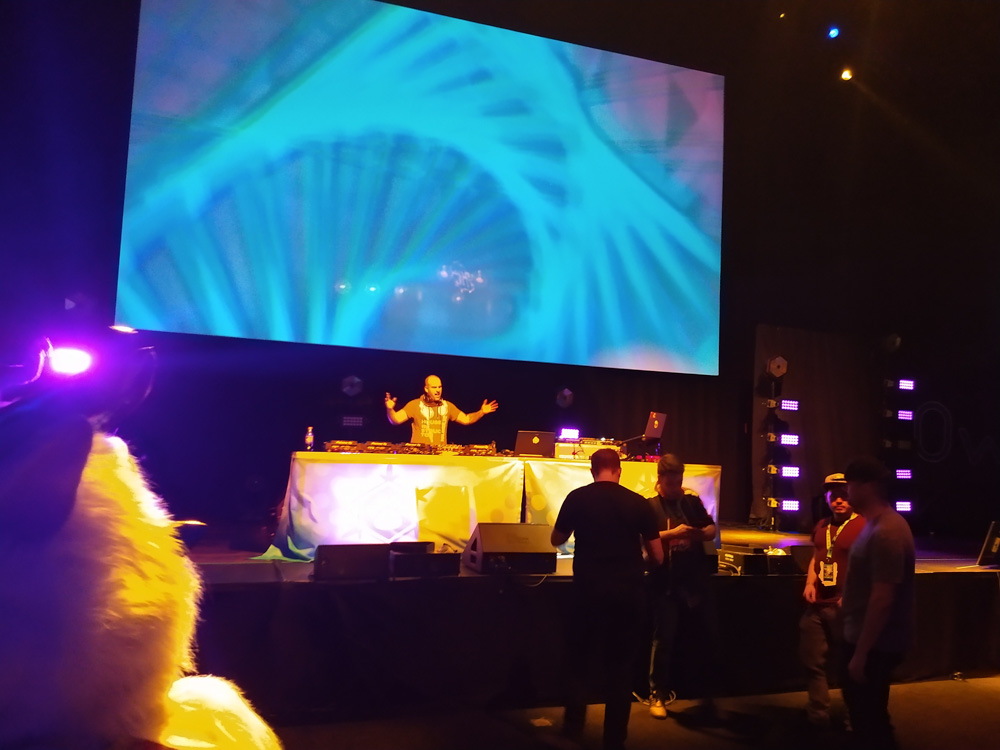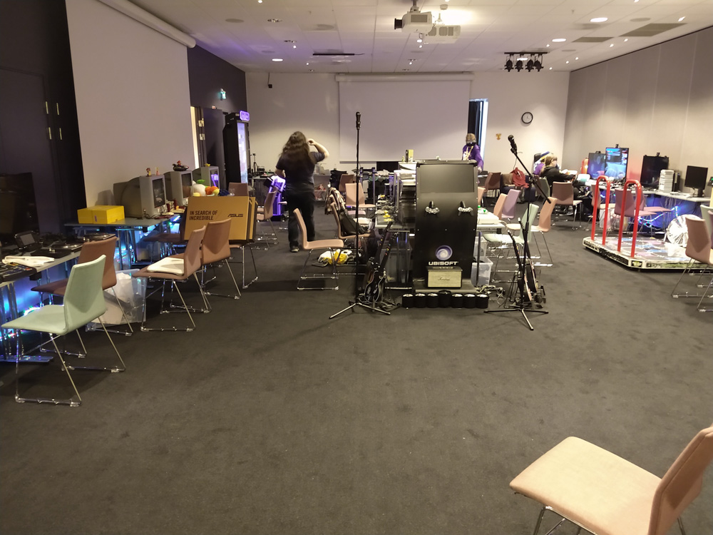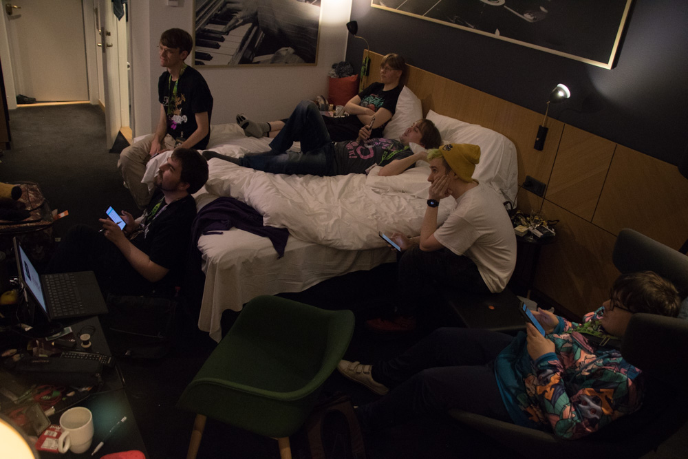 This day was a bit stressful since I still had to work from home. Tabbie was still staying at our place in Amsterdam since last weekend. I frantically packed everything in about 30 minutes and we headed to the airport in the afternoon with plenty of time to spare before the flight. Henrieke came straight from work, and we met Renée near the gate. We had a short on-time flight and a quick bite at the Burger King at Copenhagen airport, then we took the 25-minute train ride across the sea to Malmö where Chiros and Ekorren already waited for us on the train platform. We unpacked our things on the room for a bit while chatting with Eko and Tabbie, listening to Orbital - Halcyon and on and on, which we both had in our heads since we watched Hackers (1994) a few days earlier, what a great movie! Downstairs, we ran into Shorty who sadly didn't have a great time because of set-up troubles. We also met Paco, Trax and Yamavu!