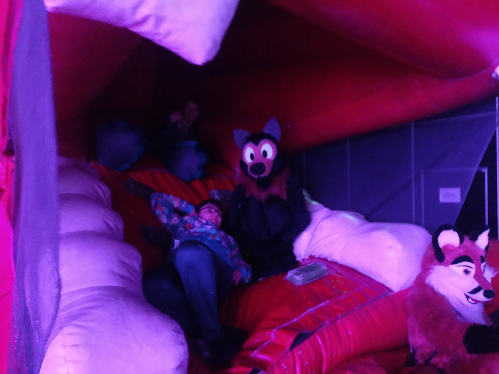 I played some Uno with Mag, Yotie and Ekorren and we went to take some dumb photos in the hotel. I also got to do a trade with the amazing Flacko! I went to the room and told Baseball about the dance, so he went there, but sadly the music wasn't to his taste at the time, so he didn't stay out too long. I met up with Chiros, Mag, Tabbie and Yotie on the dance floor and we had lots of fun on the bouncy castle, which - due to a lot of air loss - collapsed easily with enough people on it. After spending quite some time there, we went back to the Artist Lounge and I drew stuff together with Henrieke, Renée, Paco, Mag and Yamavu.