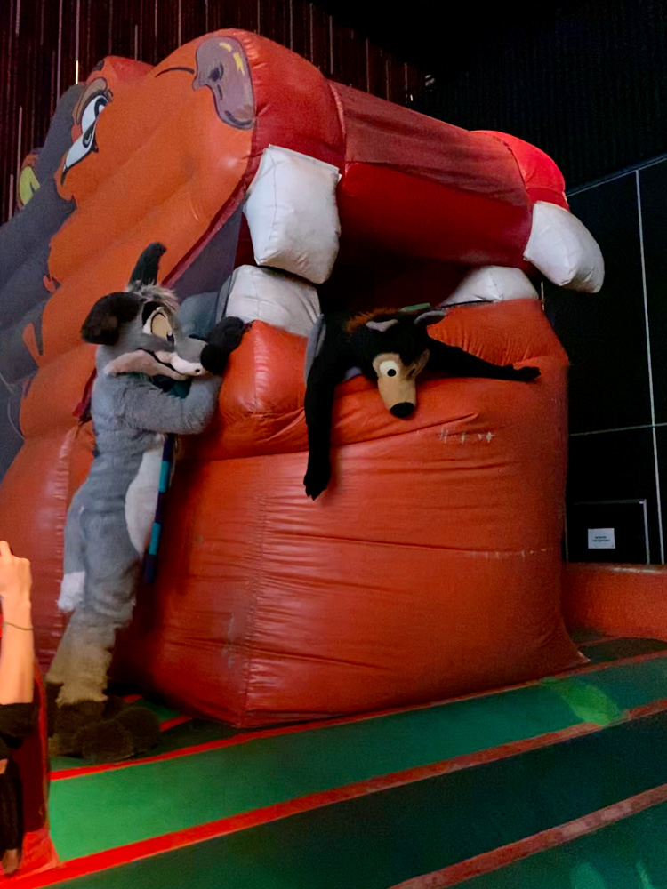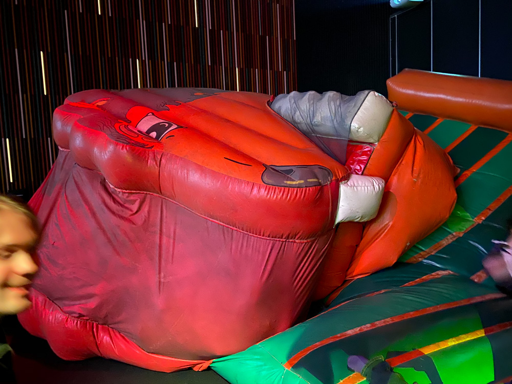Yotie and Mag also joined, and of course Yotie played some Steel Batallion. I played some DDR with Yotie, then got a much needed drink at the bar. I headed back to my room but left my key in the arcade, luckily by the time I went back down, a guy from ConOps already notified me that they found it and that I could pick it up at ConOps. I ran into Tabbie, and we decided to go suiting together! Baseball and Tabbie met up at his room and headed down to the lobby to have some fun. They visited Henrieke and enjoyed some good Flacko artwork in the Artist Lounge. Mag took some photos and Tabbie and Baseball went to the "Bounce Culture" dance, featuring bouncy music and a bouncy castle. They had lots of fun on the castle (or rather dragon-type thing), though the lack of air made it hard to get out of sometimes. Skippy joined the fun, and later Henrieke, Paco, Ekorren and Chiros joined as well. Flacko and Eddie were spotted on the dance floor too! Everyone danced stupidly to the bouncy music and took some dumb photos on the bouncy castle!