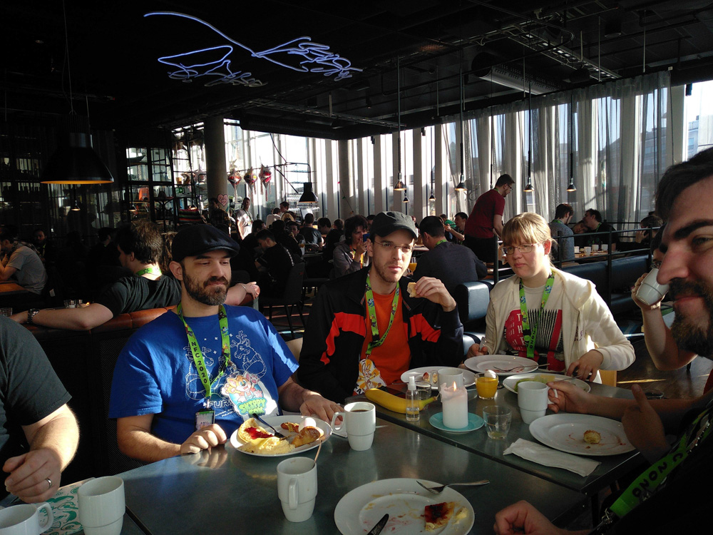 We got up at 10 and had brekfast with Yamavu, Paco, Skippy and Renée Kéké. We stayed way longer than the breakfast buffet was open. Luckily the hotel staff was very patient with us. After that Henrieke and me checked out the Dealers Den for the first time.