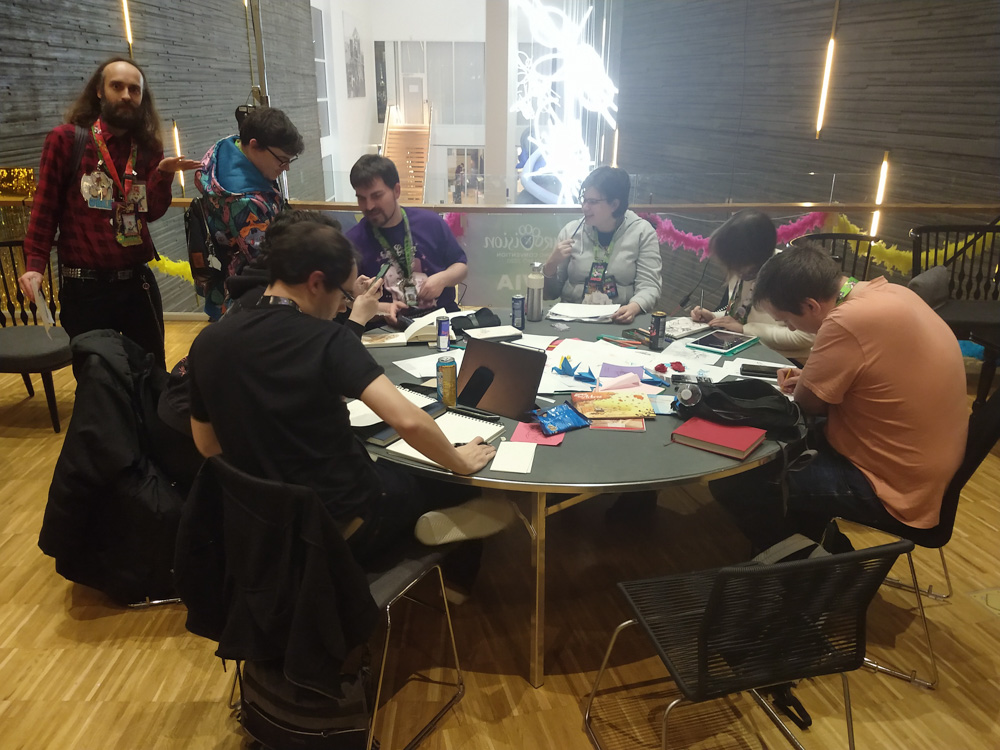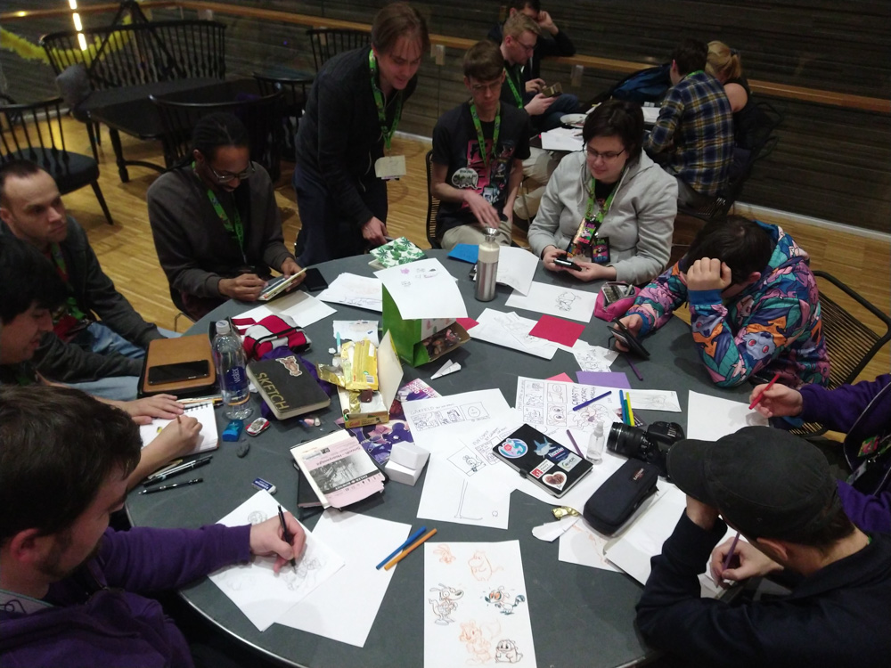 Later I met up with Ekorren, Renée, Chiros, Henrieke and Yamavu in the Artist Lounge and we drew high-quality comics.