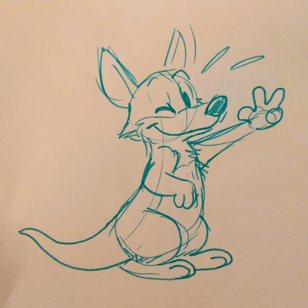 Henrieke was showing off ancient art from her DeviantArt, and I drew some fanart of the cute Bomberman roo as well as some giftart for Mag.