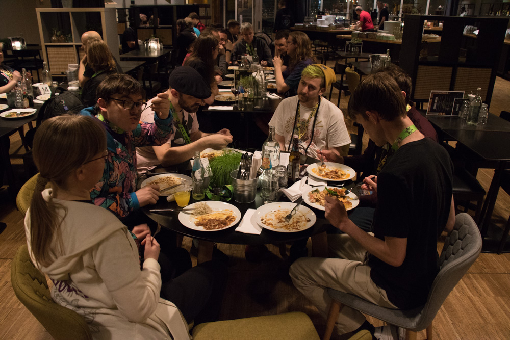 I drew some random cartoons there, then we went to have tacos at the hotel buffet with the Chiros, Dice, Vinnie, Honey, Renée, Kiguren, Yamavu, Procy, Tabbie, Geekfox and Paco.