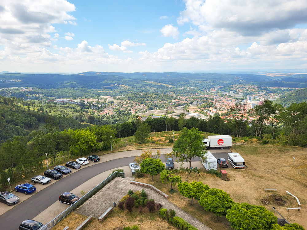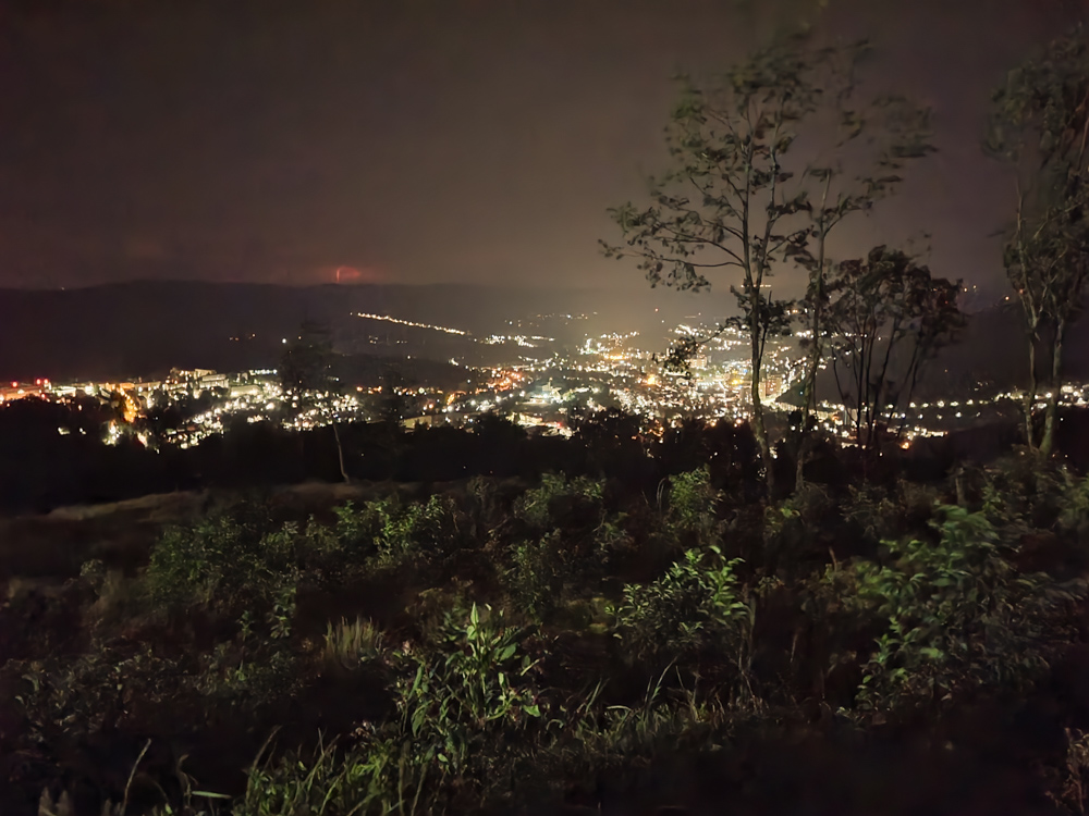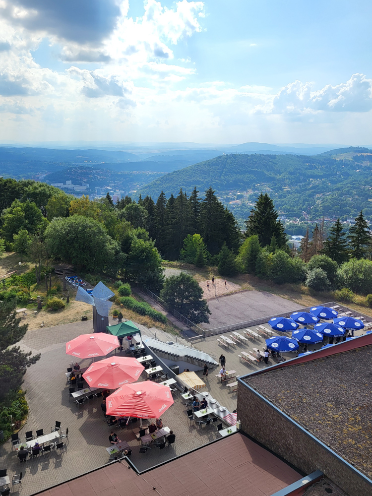 The view from the Ringberg was beautiful as always. I recently got a Samsung Galaxy S21 FE 5g, which has very nice cameras, so I could take a nice night photo of Suhl. Back at Eurofurence 15, you wouldn't have been able to see Suhl from this point, but apparently a lot of the trees on the Ringberg are dying and were cut down.