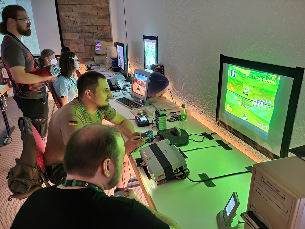 The video game was being set up and I chatted a bit with Zefiro who was guarding the entrance. I spotted Cheetah having fun with an Amiga CD32 in there already. Then I sat in the lobby with Mag and Ekorren and art-jammed a bit. We also jammed a bit on the little Casio Keyboard that Mag had brought. I went back to the game room which was open by now, and it was really nice. They had lots of old systems, Commodora, Amiga, 90s Sega and Nintendo consoles, Wii and many more!