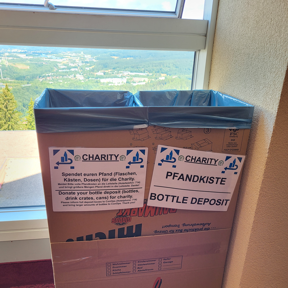 Collecting old bottles was both conventient for attendees and provided a great chunk of extra money for charity! We got back to our room shortly before 11:00, packed the rest of our stuff and put it downstairs.