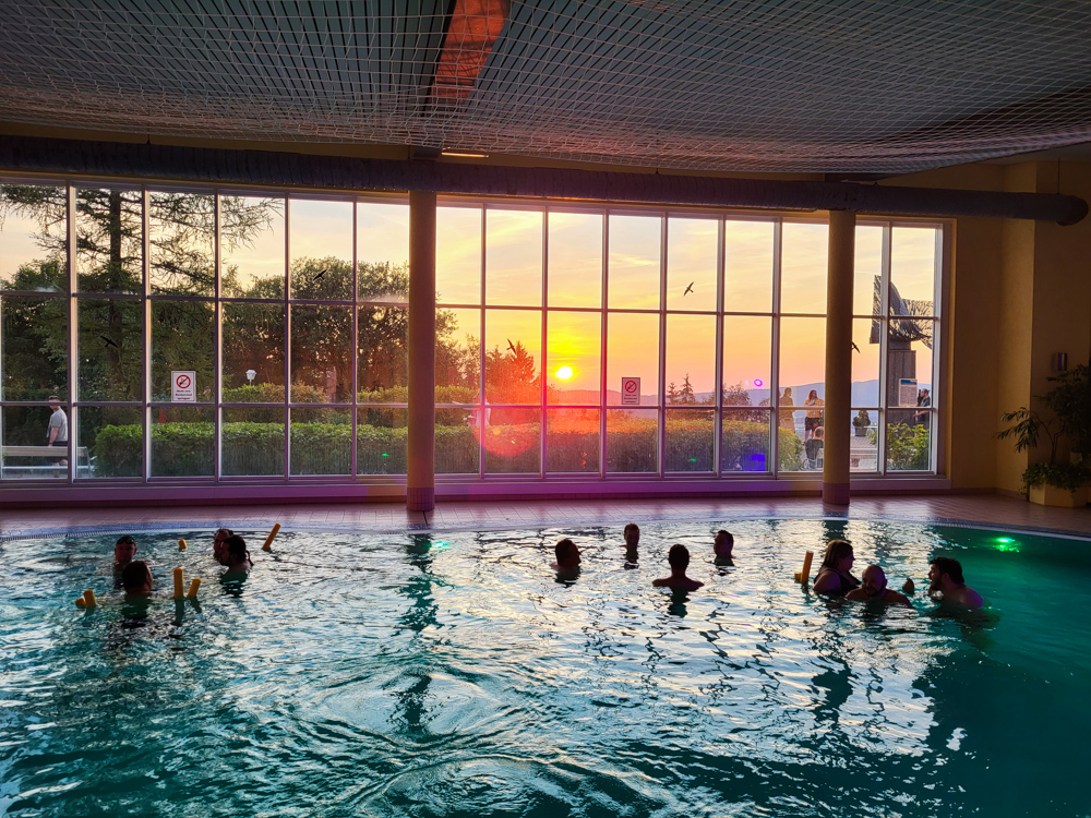 We saw a nice sunset from the pool as well and played with beach balls. We stayed until 20:20, then went back to the room. I took a shower, and the TV showed Cheetah's set. We started playing some more Wavelength and Jackbox and a round of Eat Poop You Cat. Later Yamavu, Rakipu and Mlice joined. Sadly I was too exhausted to make it to BBF's set.