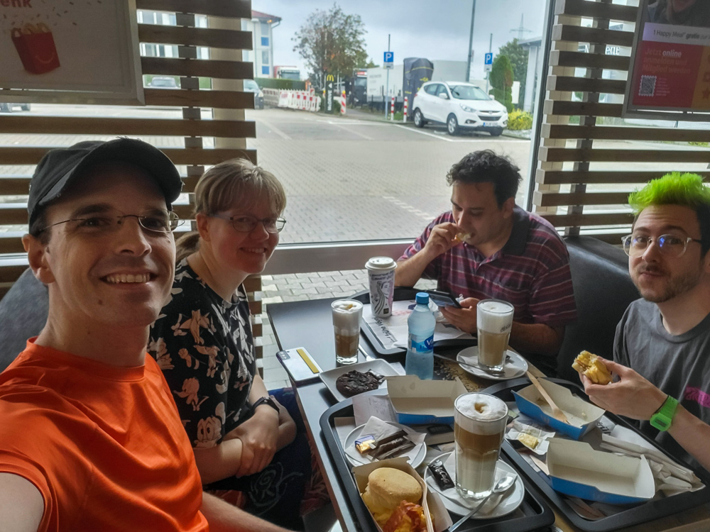 We did a Pokémon Go raid, then I went to the room to get Yotie's car key. Elevators were hopeless at this point. At breakfast I said bye to Kazzador, Luno, Hiero and Jipho. We packed the car and took off at around 13:00. Sadly once again we didn't manage to go to Tierpark Suhl, hopefully next time. The ride home was fine, we had some of the leftover cup noodles.